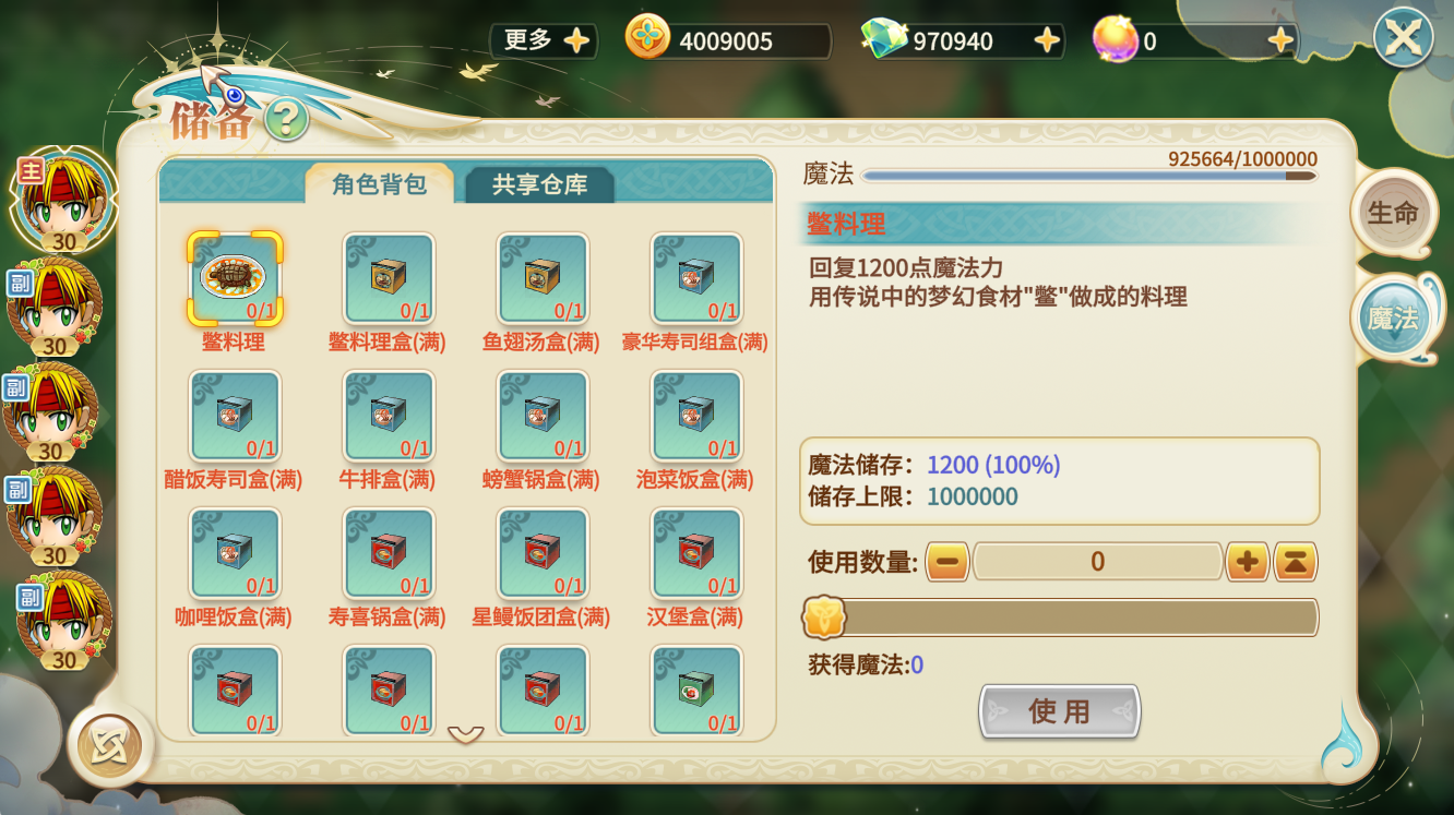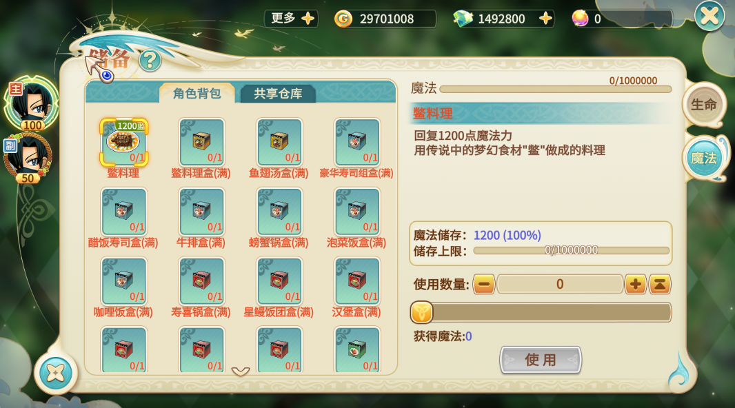 血气储备可在战斗结束后自动补满角色及宠物的血量和气力,不同的血气储备道具增加的储备量不同。