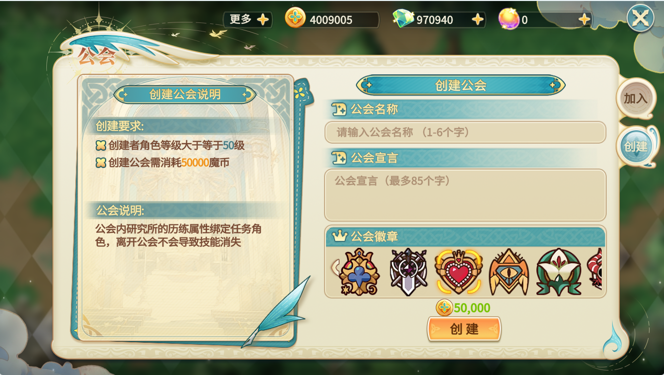 Ps:公会初建人数为100人,后续通过升级公会,可扩充更多人数